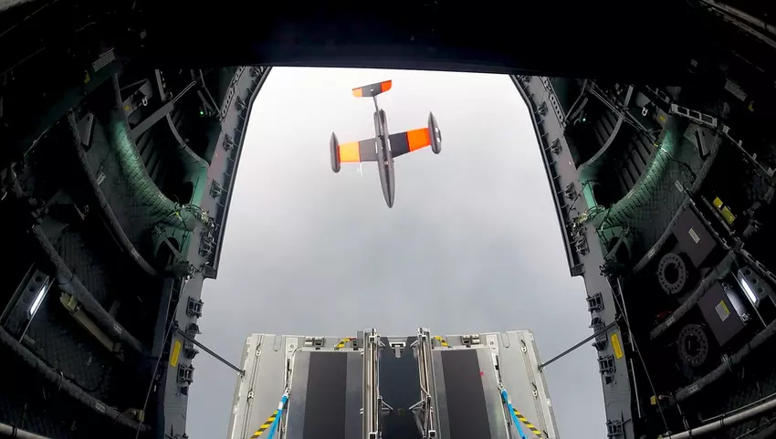 Die Bundeswehr hat den Einsatz eines unbemannten Luftfahrzeugs auf dem Gefechtsfeld mit dem Airbus A400M Atlas getestet. Er kann je nach Größe 12 bis 50 Remote Carrier-Drohnen auf einmal transportieren.