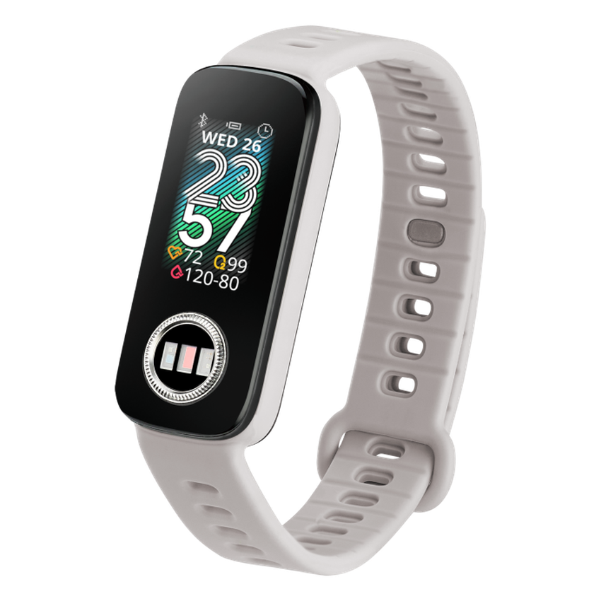 Sie sieht aus wie ein gewöhnliches intelligentes Armband mit einem rechteckigen Display, einem Silikonarmband und Gesundheitsüberwachungsfunktionen: Messung der Herzfrequenz, des Blutsauerstoffgehalts und des EKGs. Der Clou ist, dass der Benutzer den Bildschirm mit dem Finger berühren muss, um all diese Indikatoren zu bestimmen. Wie bei den meisten ähnlichen Geräten befinden sich auch auf der Rückseite des Körpers Sensoren, die jedoch eher für die Überwachung der Indikatoren rund um die Uhr zuständig sind.
