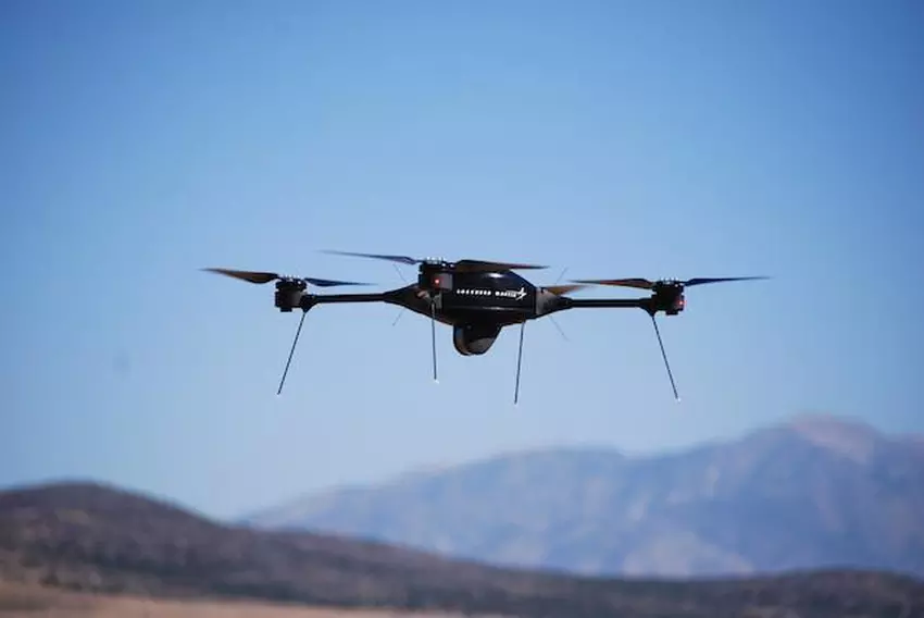 Die Stalker VXE30 ist eine Drohne, die etwa 20 Kilogramm wiegt und eine Flügelspannweite von etwa 5 Metern hat. Die leise Drohne kann senkrecht abheben und acht Stunden lang Aufnahmen machen. Sie hat eine Reichweite von 60 Meilen (fast 100 km).