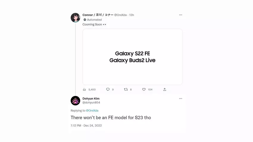 So deutet RGcloudS an, dass das Galaxy S22 FE in etwa das Gleiche kosten wird wie das A73, das nur in wenigen Ländern zu einem Preis von etwa 500 Dollar auf den Markt gekommen ist. Das Galaxy S21 FE kostet dagegen 700 Dollar.