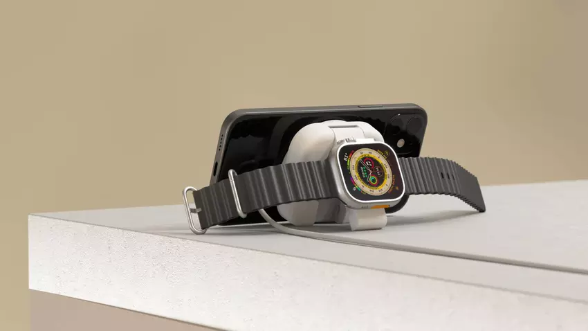 Die Dockingstation kann auf Reisen mitgenommen werden. Die Neuheit kann zwei Geräte auf einmal aufladen: iPhone und Apple Watch.