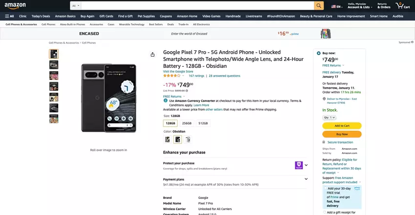 Black Friday Preis: Google Pixel 7 Pro im Angebot auf Amazon für $150 Rabatt