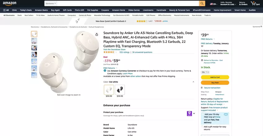 Soundcore Life A3i: TWS-Kopfhörer mit ANC und bis zu 36 Stunden Akkulaufzeit für $20 weniger