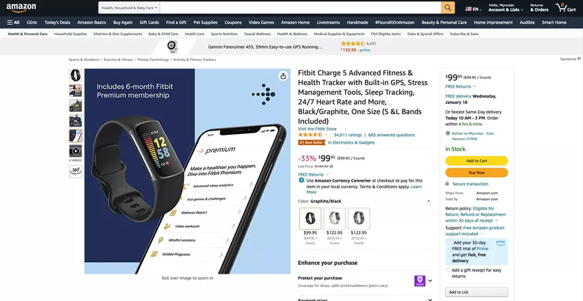Amazon verkauft jetzt ein tolles Fitbit Charge 5 Smart-Armband zu einem reduzierten Preis von $164.30.