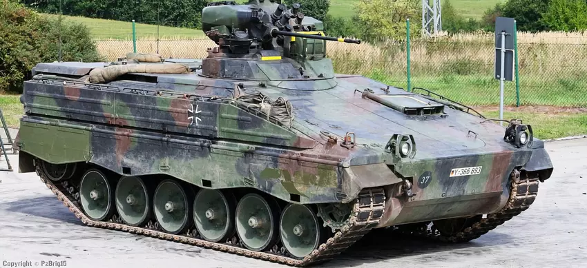 Der Marder ist ein deutscher Ketten-Schützenpanzer. Er ist seit den 1970er Jahren bei der Bundeswehr im Einsatz. Der BMP verfügt über zahlreiche Modifikationen und bietet Platz für bis zu 10 Personen. Der Marder verfügt über eine geschlossene Wanne aus verschiedenen Panzerplatten, die bis zu 30 mm dick sind. Sie schützen die Vorderseite des BMP vor 20-mm- und 25-mm-Geschossen aus einer Entfernung von 200 m und die Seiten vor Schrapnell und 7,62-mm-Kleinwaffen. Die Bewaffnung besteht aus einer 20-mm-Maschinenkanone RH 202 und einem 7,62-mm-MG3-Maschinengewehr in Kombination mit dieser. Auf dem Dach des Truppenraums befindet sich außerdem ein Maschinengewehr.