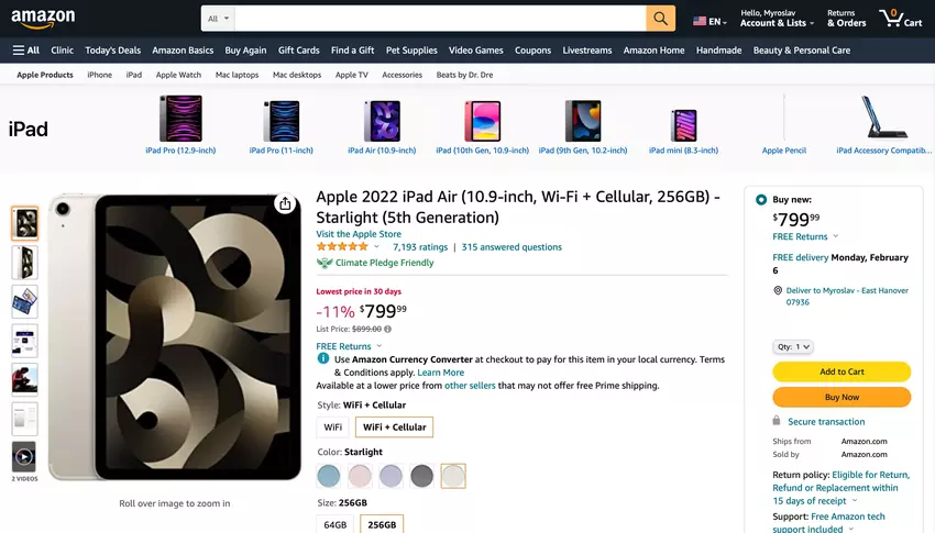 Das iPad Air mit M1-Chip, Retina-Display, 256 GB Speicherplatz und 5G-Unterstützung ist bei Amazon um $100 günstiger zu haben