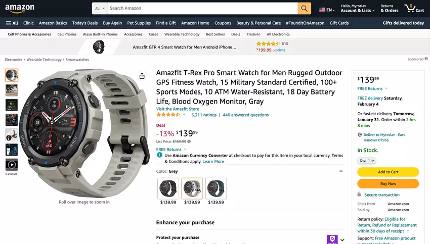 Amazfit T-Rex Pro mit einem robusten Gehäuse, SpO2-Sensor und bis zu 18 Tagen Akkulaufzeit ist auf Amazon für $20 Rabatt erhältlich