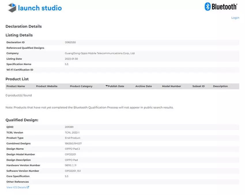 Das OPPO Pad 2 wurde in der Bluetooth SIG-Datenbank mit der Modellnummer OPD2201 und einem Bluetooth 5.3-Modul gesichtet. Die Veröffentlichung des Geräts wird demnach in naher Zukunft erfolgen. Höchstwahrscheinlich wird die Neuheit im Februar vorgestellt werden.