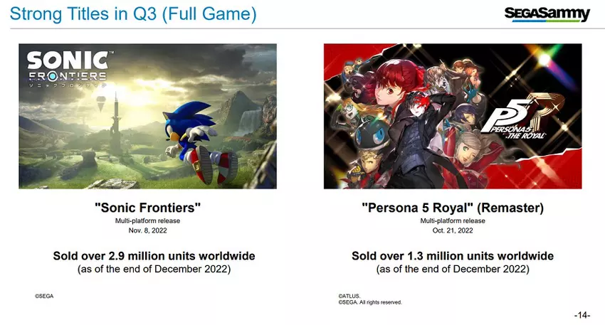 Der Grund für Segas Erfolg war die Veröffentlichung des Action-Plattformer Sonic Frontiers und die Wiederveröffentlichung von Persona 5 mit dem Untertitel Royal für aktuelle Plattformen.