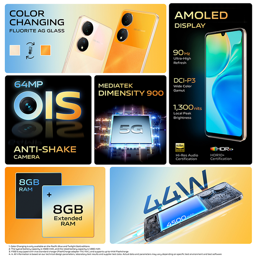 vivo Y100: 90Hz AMOLED-Display, MediaTek Dimensity 900 Chip und 64MP Kamera für $300