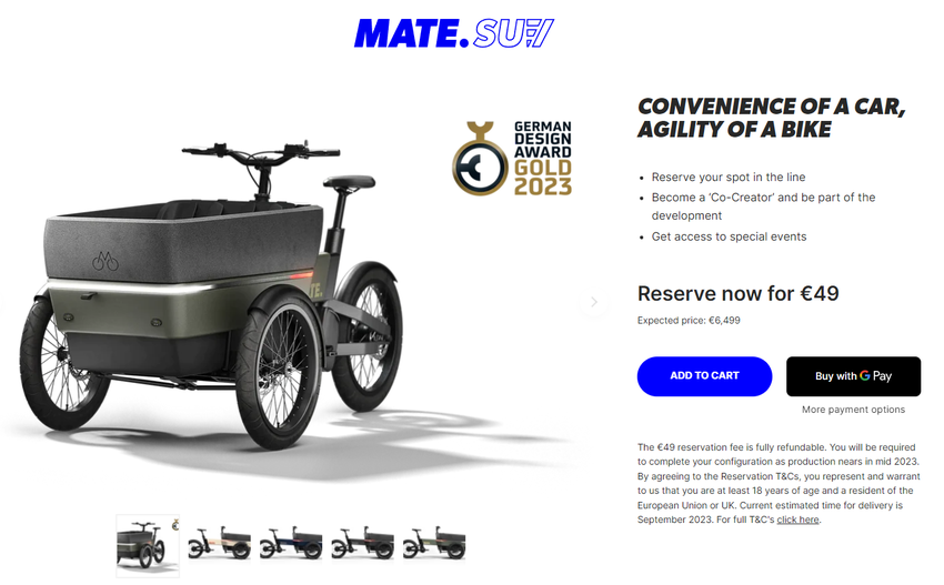 Mate stellt seit sieben Jahren faltbare Elektrofahrräder her und hat am Vortag sein erstes mit einem Elektromotor ausgestattetes Lastenfahrrad vorgestellt. Die Neuheit trägt den Namen Mate SUV.