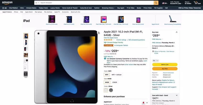 iPad (2021) mit Retina-Display, A13 Bionic Chip und Touch ID bei Amazon bis zu $80 günstiger