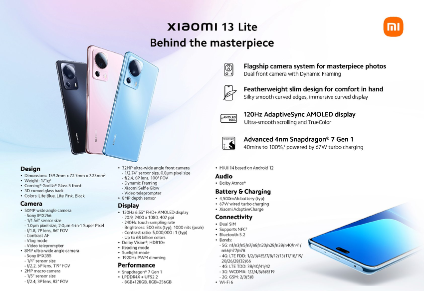 Xiaomi 13 Lite - Snapdragon 7 Gen 1, Dual-Frontkamera, 120Hz-Display und Android 12 ab €499