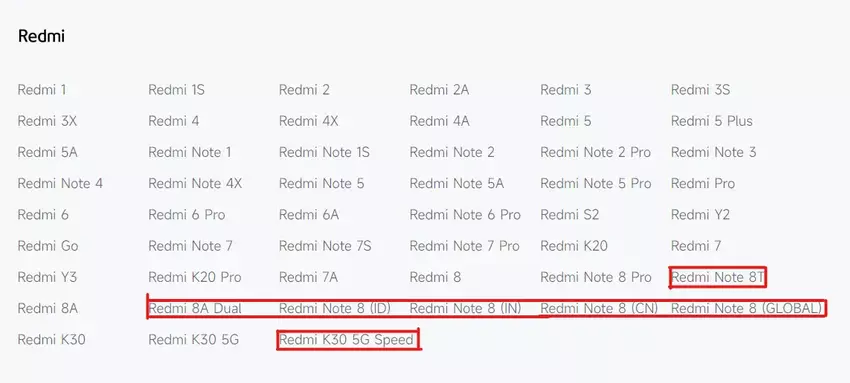 Zwei weitere Modelle heißen Redmi 8A Dual und Redmi K30 Racing 5G. Sie wurden in der ersten Hälfte des Jahres 2020 veröffentlicht. Das erste Smartphone erhielt Android 9.0 Pie und MIUI 10, während das zweite Android 10 und MIUI 11 erhielt.