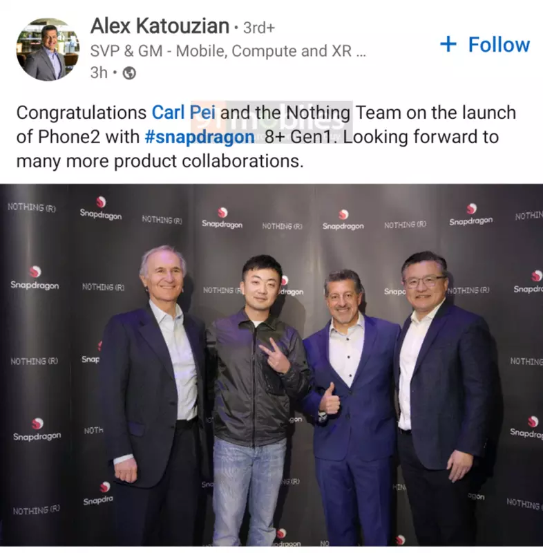 Wie bereits vermutet, handelt es sich um den letztjährigen Flaggschiff-Prozessor Snapdragon 8+ Gen 1. Dies wurde von Alex Katouzian, dem Leiter der Qualcomm-Abteilungen Mobile, Computing und XR, beiläufig auf LinkedIn berichtet. Einige Zeit später bearbeitete Katouzian den Beitrag und entfernte den Namen des Chips.