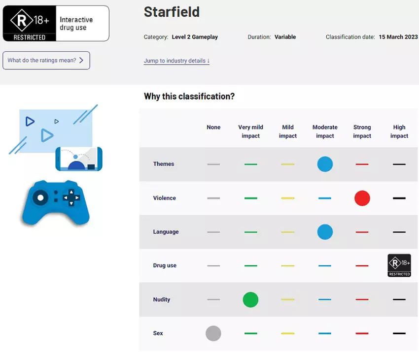 Nur für Erwachsene: Die australische Klassifizierungskommission hat Starfield eine Altersfreigabe von R (18+) gegeben.