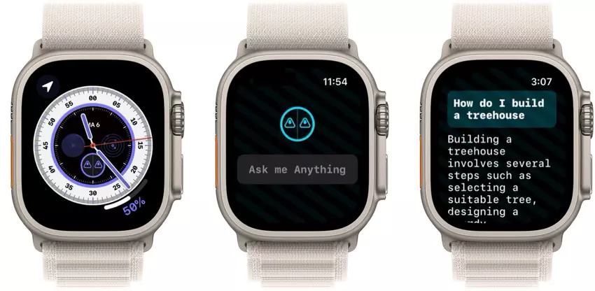 Die App fügt ein spezielles Widget auf dem Zifferblatt Ihrer Uhr ein, mit dem Sie schnellen Zugang zu ChatGPT haben. Sie können der künstlichen Intelligenz über Textnachrichten oder Sprachbefehle Fragen stellen. Das macht die App zu einer praktischen Alternative zum Sprachassistenten Siri, der in den meisten Fällen Fragen in Form von Web-Ergebnissen beantwortet, die an Ihr iPhone gesendet werden.
