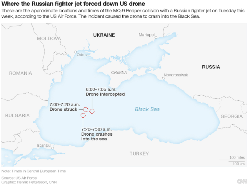 Nach dem Absturz der MQ-9 Reaper werden die USA auch weiterhin Drohnen über dem Schwarzen Meer starten, allerdings werden die Drohnen nun näher an der Türkei fliegen