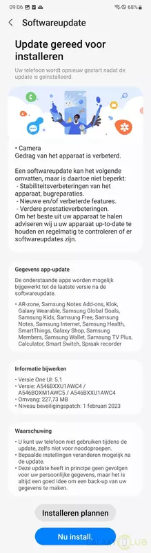 Die neue Software-Version trägt die Build-Nummer A546BXXU1AWC4 und wiegt rund 230 MB. Die Entwickler haben Fehler in der Firmware behoben und auch die Kameraleistung des Smartphones verbessert. Darüber hinaus hat Samsung auch eigene Apps aktualisiert. Zum Beispiel Samsung Notes, Clock, Wearable, SmartThings, Galaxy Shop, Samsung Members und Wallet.