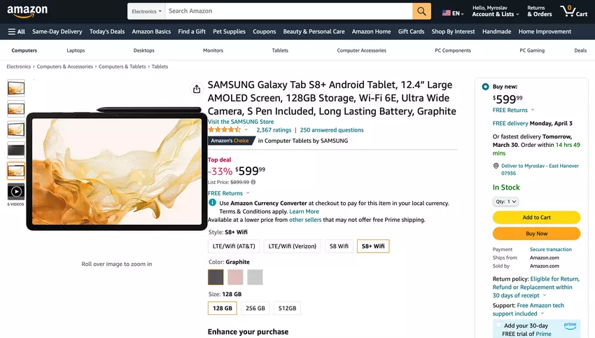 Es handelt sich um das Samsung Galaxy Tab S8+ in der 128-GB-Variante. Das Gerät ist jetzt im Angebot für check price on amazon. Das ist billiger als das Galaxy Tab S8 mit demselben Speicherplatz.