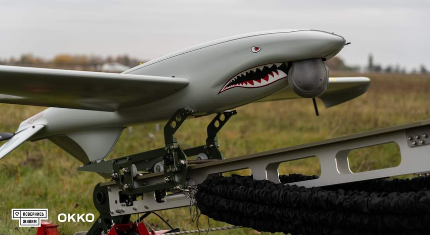 Bei dem Shark handelt es sich um eine Drohne von Ukrspecsystems, die zum Ausrichten und Korrigieren von Feuer eingesetzt wird. Der erste Komplex wurde im März 2023 an die Artilleristen übergeben. Die Drohne ist in der Lage, bis zu 4 Stunden lang ohne Landung zu operieren. Die maximale Flugreichweite liegt bei über 300 km, die Kommunikationsreichweite bei 60 km.