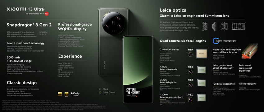 Xiaomi 13 Ultra - Snapdragon 8 Gen 2, vier 50MP Kameras, 5x Zoom, 120Hz AMOLED TCL C7 Display und IP68 Schutz ab $875