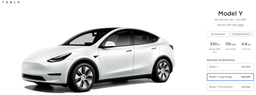 Der Preis des Elektro-Crossovers Tesla Model Y ist um 3.000 Dollar gesunken. Die Long Range-Version mit einer Reichweite von 528 km kostet jetzt 49.990 $. Die Performance-Variante wird 53.990 $ kosten. Die Basisversion liegt bei 46.990 Dollar.