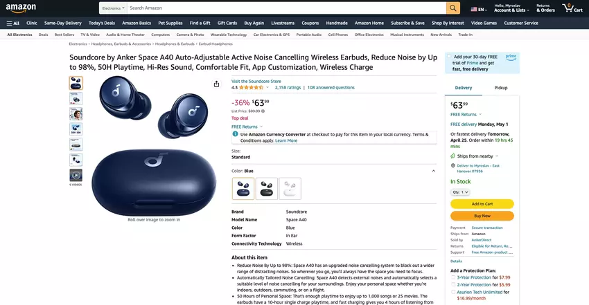 Soundcore by Anker Space A40 auf Amazon: TWS-Kopfhörer mit adaptivem ANC, Hi-Res Audio Wireless und bis zu 50 Stunden Akkulaufzeit für $63,99 ($36 Rabatt)