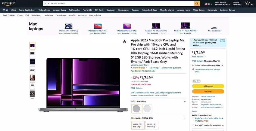Das Notebook ist bei Amazon mit einem guten Rabatt erhältlich. Es handelt sich um die Version mit einem proprietären M2 Pro-Prozessor mit 10 Kernen und einem 512 GB SSD-Laufwerk. Der Preis liegt derzeit bei $1,464.95. Diese Version des MacBook Pro ist nur in der Farbe Space Gray erhältlich.