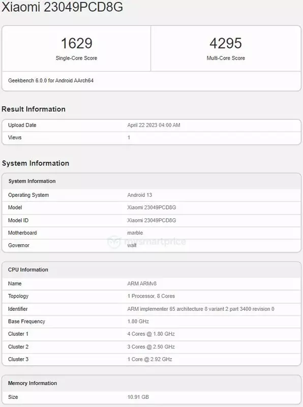 Den Leistungstest hat die Version mit 12 GB RAM bestanden. Sie erreichte 1.629 Punkte im Single-Core-Modus und 4.295 Punkte im Multi-Core-Modus. Im Vergleich dazu erreichte das POCO F5 Pro mit dem Snapdragon 8 Gen 1 Chip 1302 bzw. 4080 Punkte.