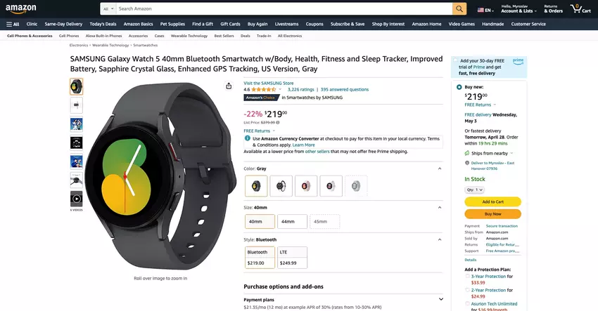 Samsung Galaxy Watch 5 kann auf Amazon mit einem Rabatt von bis zu $80 gekauft werden