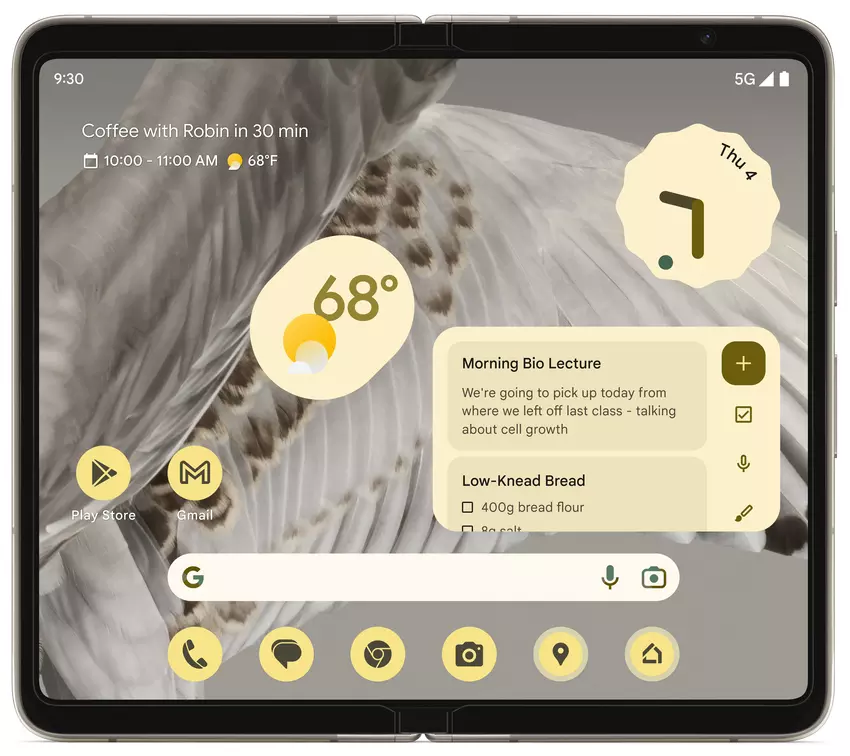 Die Neuheit soll mit einem Tensor G2-Prozessor gepaart mit einem Titan M2-Sicherheitschip, 12 GB LPDDR5 RAM und 128/256 GB UFS 3.1-Speicher ausgestattet sein. Das Pixel Fold wird einen Schnelllade-Akku und fünf Kameras haben: eine 48 MP + 10,8 MP + 10,8 MP Triple-Hauptkamera und zwei 9,5 MP und 8 MP Frontkameras. Die Neuheit wird ab 1799 Dollar kosten.