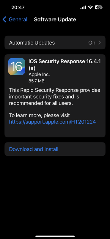 Apple hat unerwartet ein Rapid Security Response (RSR) Update für iPhone- und iPad-Nutzer mit iOS 16.4.1 angekündigt.