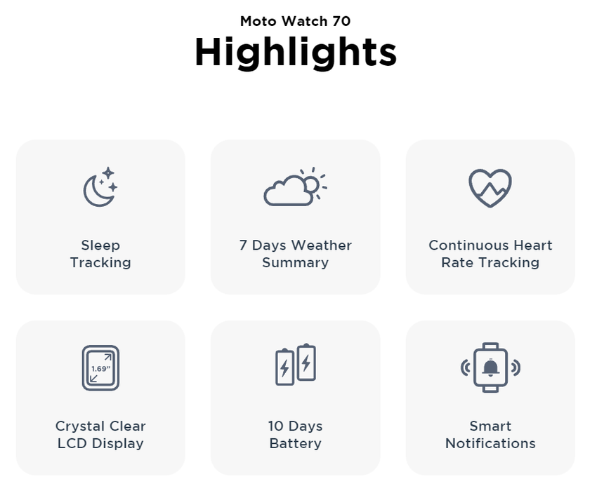 Die Moto Watch 70 wird in der Farbvariante Phantom Black in den Handel kommen. Der Preis der Smartwatch wurde noch nicht genannt, aber es ist wahrscheinlich, dass die Neuheit weniger als 100 Dollar kosten wird.