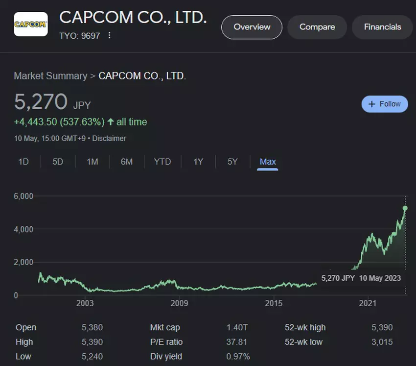Aufgrund der hohen Verkaufszahlen stiegen die Aktien von Capcom deutlich an und liegen derzeit bei etwa 38 Dollar.