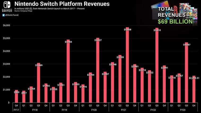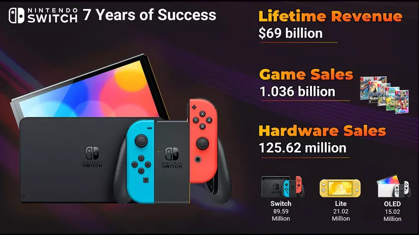 Die Analysen von TweakTown.com zeigen deutlich, dass die Einnahmen des Unternehmens aus Geräte- und Spieleverkäufen seit der Einführung der ersten Nintendo Switch-Konsolen im März 2017 mehr als 69 Milliarden US-Dollar betragen haben!