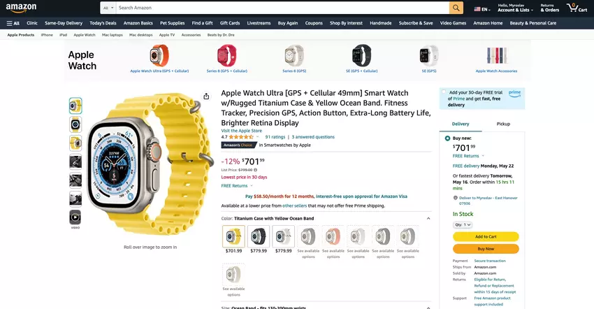 Das Spitzenmodell der Apple Watch Ultra Smartwatch ist erstmals bei Amazon zu einem vergünstigten Preis erhältlich.