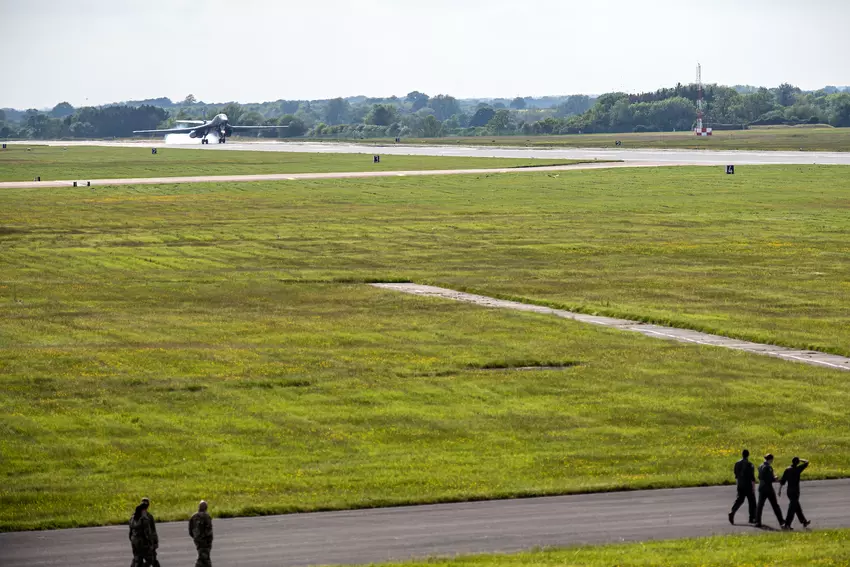 Die B-1B Lancer landete auf dem britischen Royal Air Force-Stützpunkt Fairford. Sie werden von zwei weiteren Flugzeugen für die Mission der Bomber Task Force begleitet. Sie werden morgen, am 25. Mai, in der Region eintreffen.