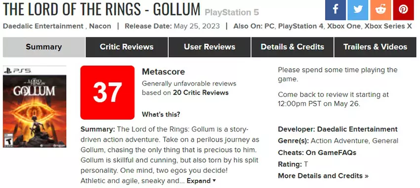 Es ist ein Flop: 37 Punkte auf Aggregatoren machen Der Herr der Ringe: Gollum zu einem der schlechtesten Spiele der letzten Jahre