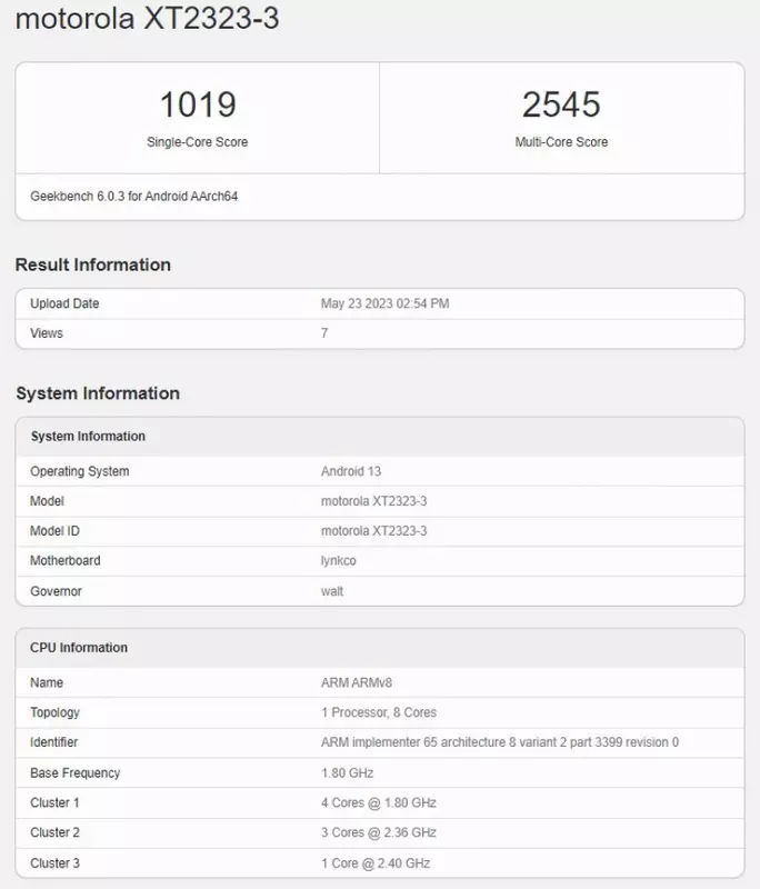 Im Vorfeld der Markteinführung am 1. Juni wurde das Motorola Razr 40 Clamshell in der Geekbench-Leistungstest-Datenbank entdeckt.