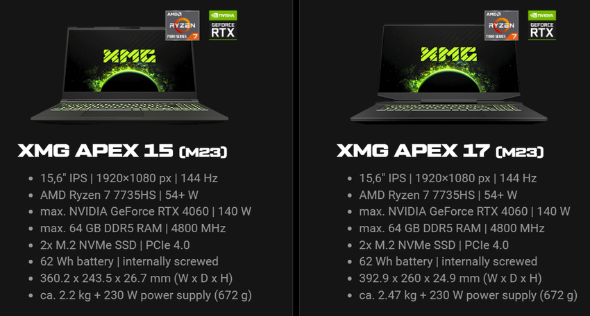 Schenker stellt XMG APEX Gaming-Notebooks mit RTX 40 Grafik ab 1299 Euro vor