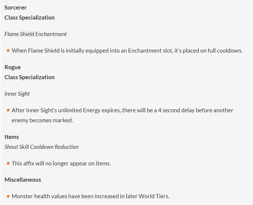 Zu den Änderungen, die in der unten stehenden Liste vollständig aufgeführt sind, gehören auch Änderungen am Flammenschild des Zauberers, der sich nun vollständig regeneriert, nachdem er in einem speziellen Slot verwendet wurde: