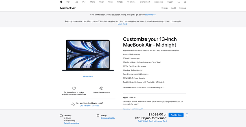 Apple hat den Preis für das 13-Zoll MacBook Air mit M2-Chip gesenkt