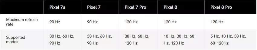 Schließlich wird laut dem Leak die Bildwiederholrate des Pixel 8 auf 120 Hz steigen. Und das Pixel 8 Pro wird es ermöglichen, die Bildwiederholrate nahtlos zwischen 60 Hz und 120 Hz zu variieren, im Gegensatz zu früheren Generationen, die nur einige vordefinierte Frequenzen verwenden konnten.