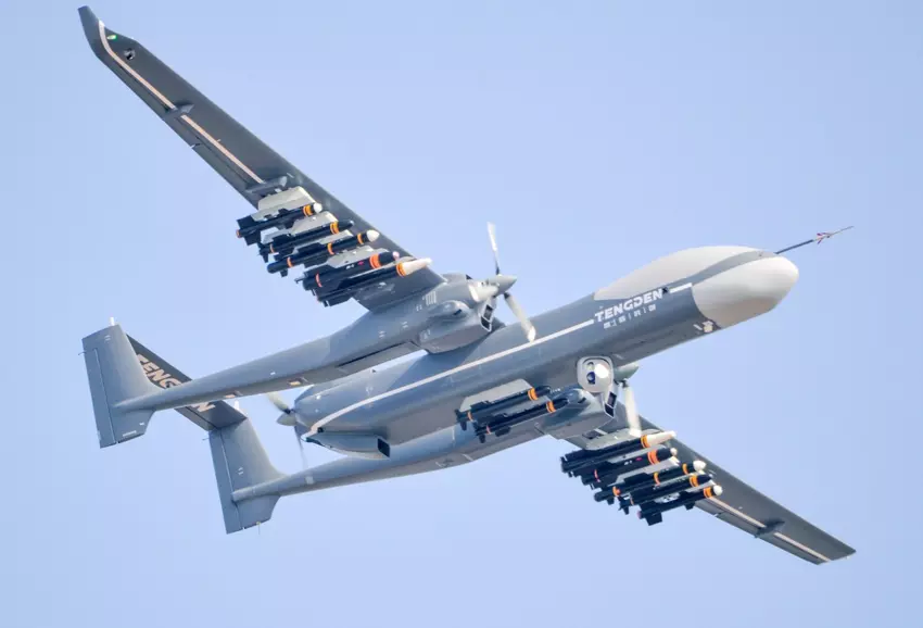Diese Drohnen können Luftbomben und Raketen tragen und können auch mit kleineren Drohnen bestückt werden. Im Rahmen der Übung hoben die drei Scorpions abwechselnd vom Flugplatz ab und reihten sich in der Luft in verschiedenen Formationen auf.