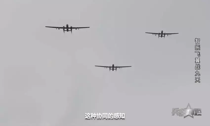 Das chinesische Fernsehen zeigte einen Ausschnitt aus einer Übung, bei der die Bediener drei Drohnen der Volksbefreiungsarmee gleichzeitig über eine einzige Bodenstation steuern konnten.