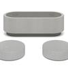 Es handelt sich um ein kabelloses Kompaktsystem, das aus drei Lautsprechern besteht: einem Hauptlautsprecher und zwei kleineren Lautsprechern. Ein Paar der kleineren Lautsprecher muss an einer beliebigen Stelle an den Seiten installiert werden, so dass ein 360-Grad-Surround-Sound-Erlebnis entsteht. Die kleineren Lautsprecher synchronisieren sich automatisch mit dem Hauptgerät, wenn sie nicht angeschlossen sind, und laden sich wieder auf, sobald sie angedockt sind.