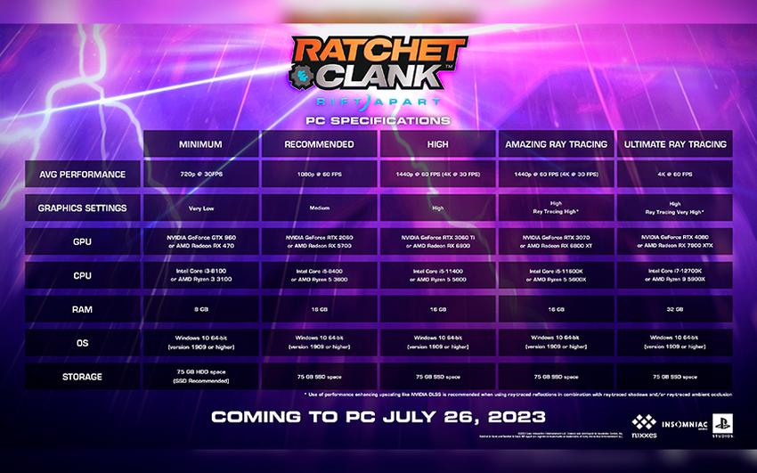 Die PC-Version von Ratchet & Clank: Rift Apart wird am 26. Juli erscheinen, und Sony hat die Systemanforderungen für das Spiel vorgestellt.