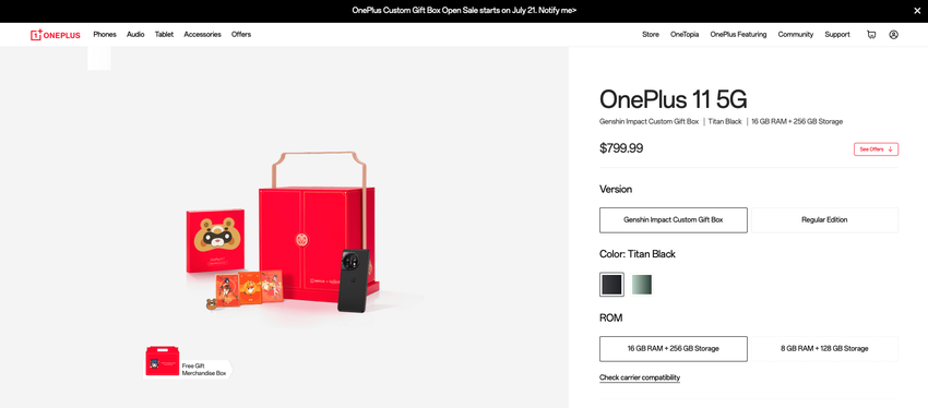 OnePlus 11 x Genshin Impact Custom Gift Box hat sein Debüt in den USA und Kanada gemacht