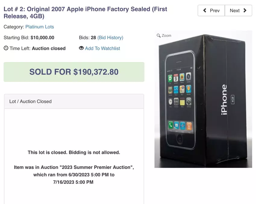 Ende Juni wurde bekannt, dass das Original-iPhone bei LCG Auctions versteigert werden würde. Zwei Wochen später wurde das Modell der ersten Generation für eine Rekordsumme verkauft.